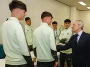 老佛爷观看欧青联决赛,赛前和皇马青年队球员进行交流
